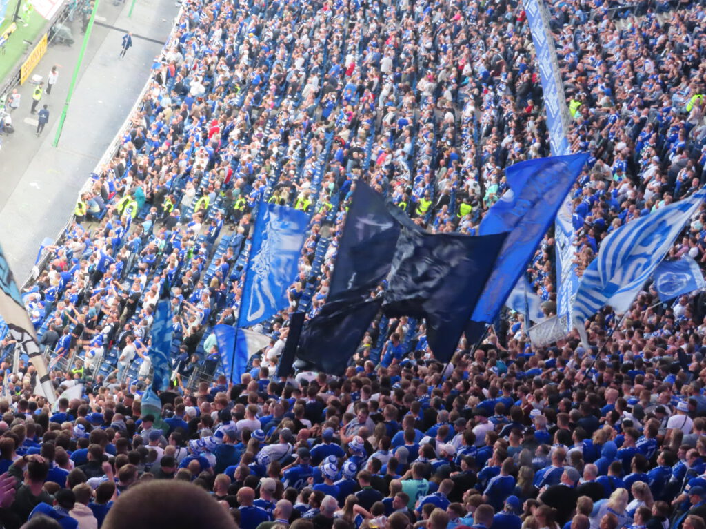 Der Gästeblock gibt stimmlich alles, „Gelsenkirchen-Schalke!“, „Auf geht’s Schalke kämpfen und siegen“ und „Geh‘n mit dir auf jede Reise“ werden rausgebrüllt, doch die Jungs auf dem Rasen können sich nicht aus der Einschnürung durch die Gastgeber befreien. In der ersten Minute der rund siebenminütigen Nachspielzeit passiert es dann: Van der Brempt auf Glatzel, 4:3 (90+1.). Sch…ade!