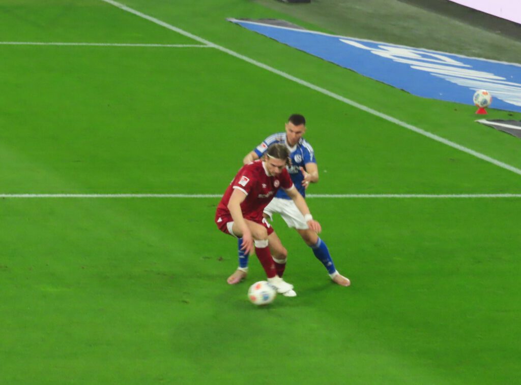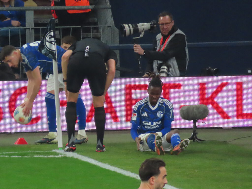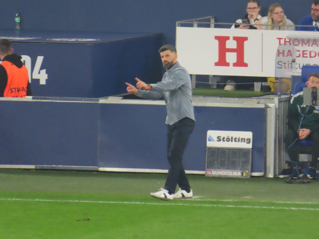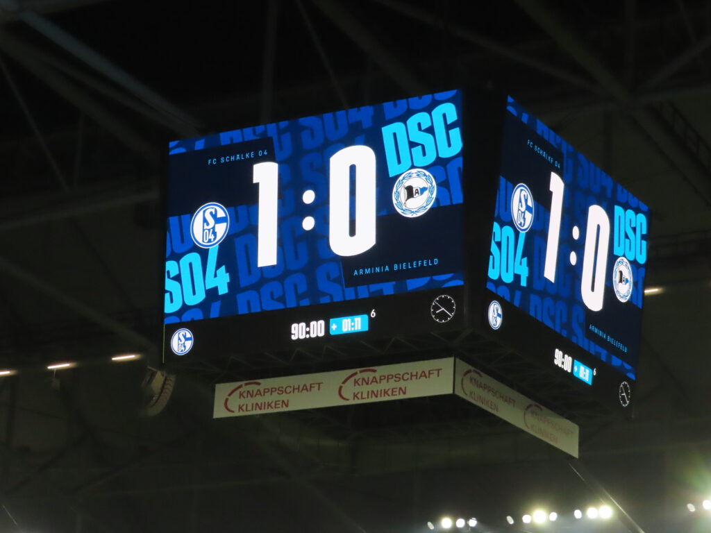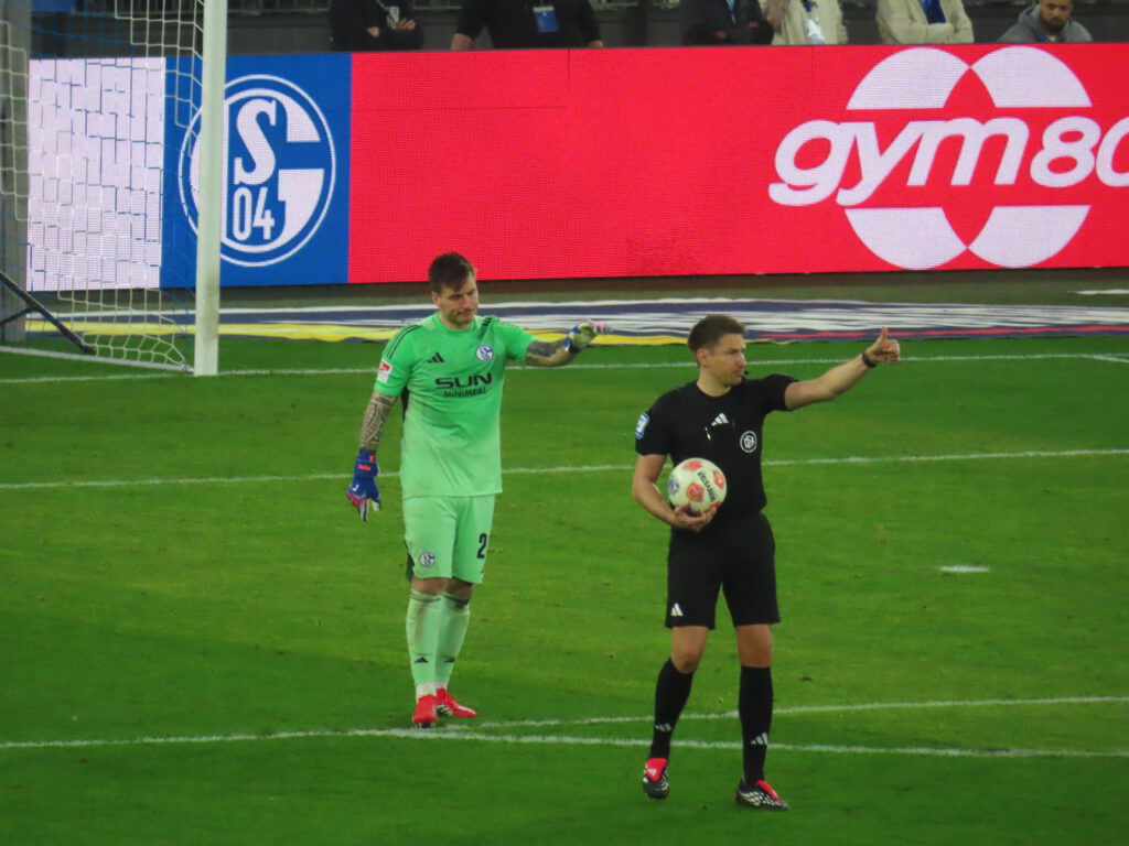 Nunmehr bringt auch Muslic frisches Personal und bringt zu den Klängen von „Immer wieder S04“ Sanchez für Ndiaye, dessen Einsatz mit einem Extrapplaus belohnt wird, und Bachmann für Ljubicic (78.). Wenig später fährt den Schalkern der Schreck in die Knochen, denn Grodowski hat das vermeintliche 1:1 erzielt (81.), aber noch in die Meckereien der Marke „wenn man die Dinger vorne nicht macht, rächt sich das hinten“ hinein meldet sich der VAR zu Wort und befindet nach kurzer Beratung auf Abseits.